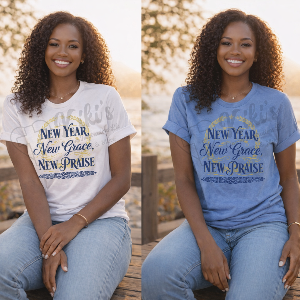 Our “New Year, New Grace, New Praise” or “New Year, Same Grace, New Praise” T-shirts are a reminder that even as the calendar changes, God’s grace remains constant—and our praise should too.
